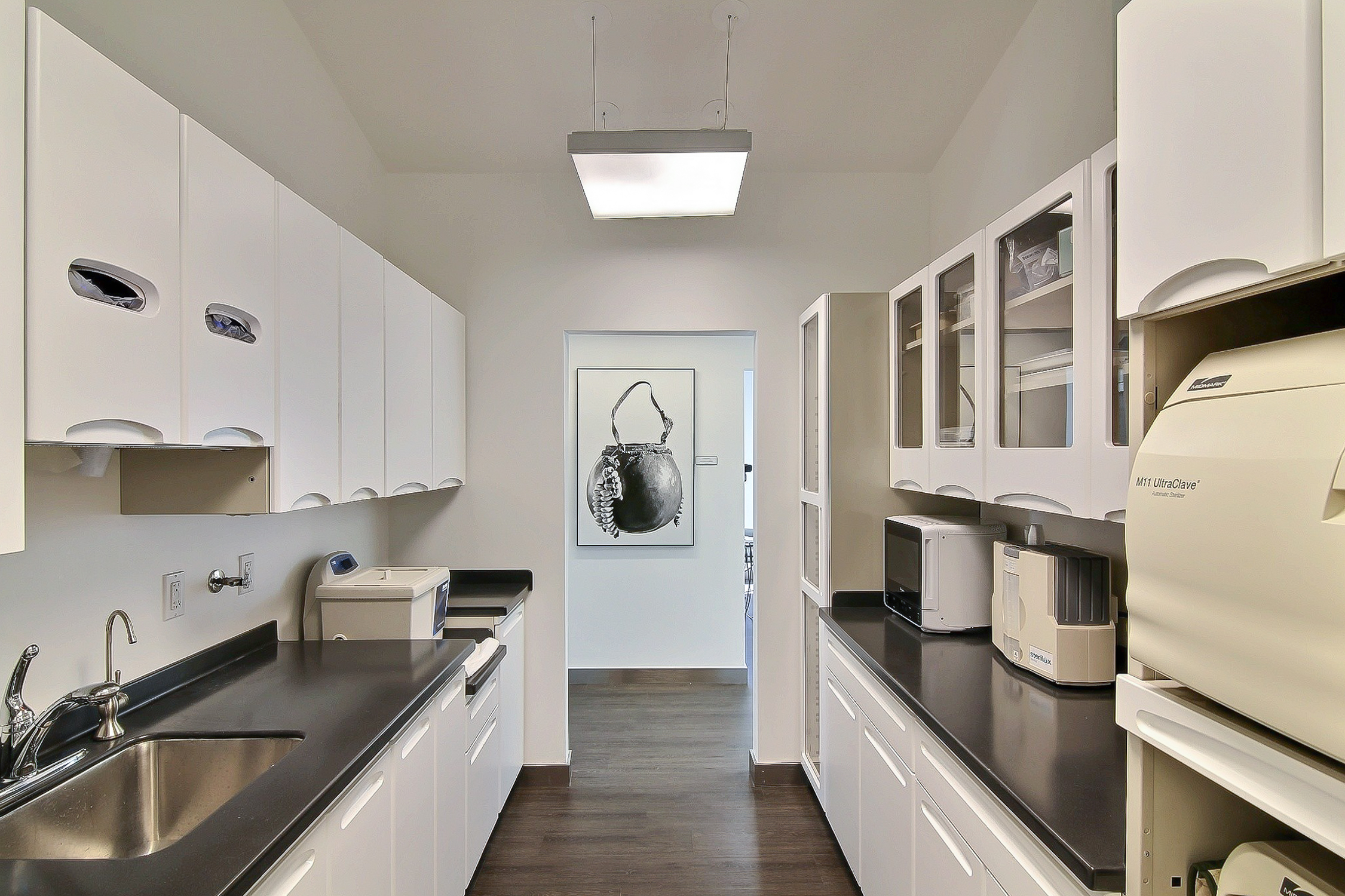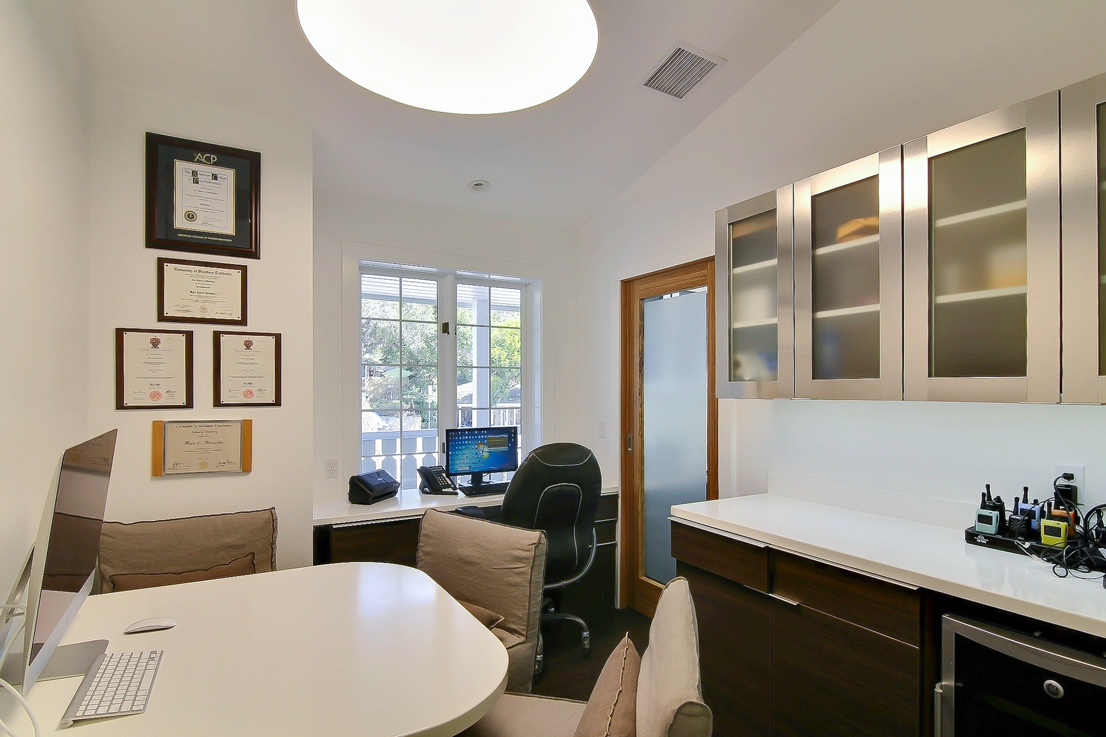 New offices for Dr. Marc Alexander, specializing in cosmetic, restorative and implant reconstruction. The program included contemporary design with an emphasis on natural, comfortable finishes. The offices are located within an existing two-story building at the edge of the Summerland bluff overlooking the Pacific Ocean with sweeping views of the coast.